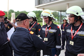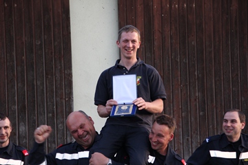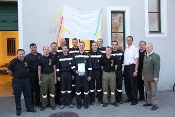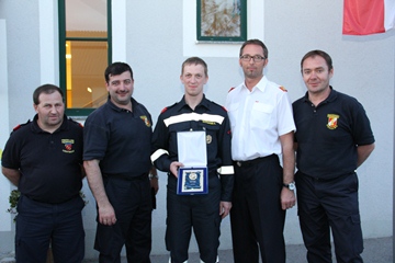 Nach der Übergabe der Urkunde und des goldenen Bewerbsabzeichen durch LBD Josef Buchta wurde von den Feuerwehrkameraden und der Bevölkerung von Felling den sieben neuen "Goldenen" und natürlich den Tagessieger Andreas Gutmann ein herzlicher Empfang in Felling bereitet.