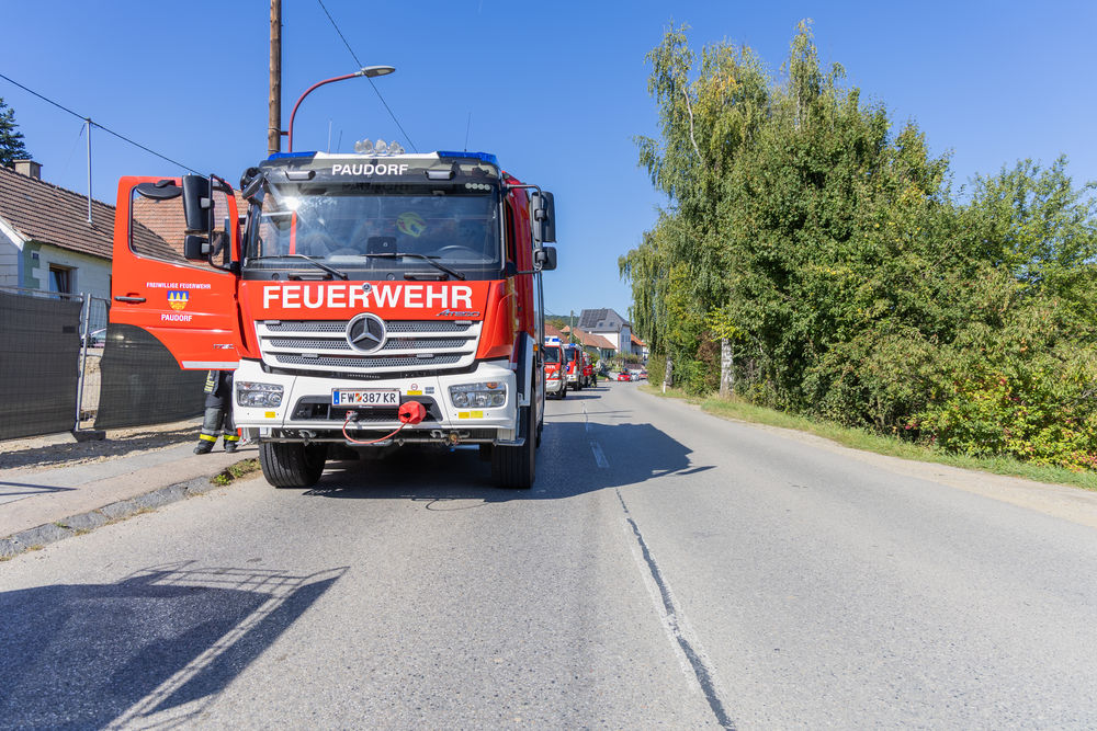 Am Freitagnachmittag, dem 19. September 2025, kam es im Ortsteil Hörfarth (Gem. Paudorf) zu einem Küchenbrand. Kinder die sich in der Brandwohnung befanden, bemerkten dass sich in der Küche ein Feuer entwickelte und riefen unverzüglich um Hilfe. Bauarbeiter die am Nebengebäude Arbeiten durchführten, erkannten die Notlage und griffen sofort ein. Während ein Arbeiter den Feuerwehrnotruf absetzte, bekämpfte ein weiterer Arbeiter das Feuer mit einem Handfeuerlöscher.