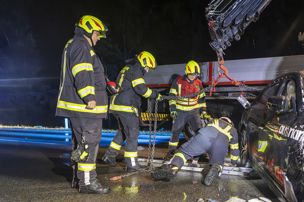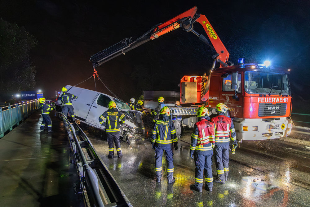 Nach der Freigabe durch die Polizei wurden die Fahrzeuge geborgen. Den BMW hob das Kranfahrzeug auf den Abschleppanhänger der Feuerwehr Palt. Der zerstörte Kastenwagen wurde auf das Plateau des Wechselladefahrzeuges geladen und auf einen gesicherten Parkplatz abgestellt.