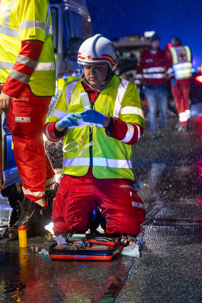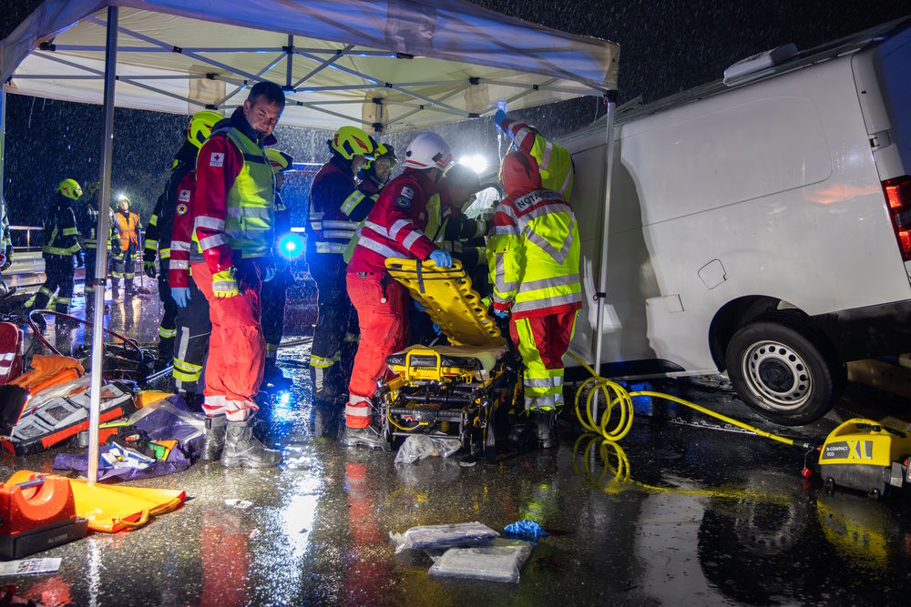 Beim Eintreffen der ersten Einsatzkräfte konnte bestätigt werden, dass der Fahrer eines Kastenwagens schwer eingeklemmt war. In dem zweiten Fahrzeug fanden die Einsatzkräfte eine Person vor, die aufgrund ihrer Verletzungen das Fahrzeug nicht selbstständig verlassen konnte. Das Rote Kreuz Krems, das mit mehreren Fahrzeugen vor Ort war, nahm unverzüglich die Patientenversorgung auf. Neben dem Roten Kreuz war wetterbedingt auch das Notarzteinsatzfahrzeug des Christophorus 2 am Einsatzort.
