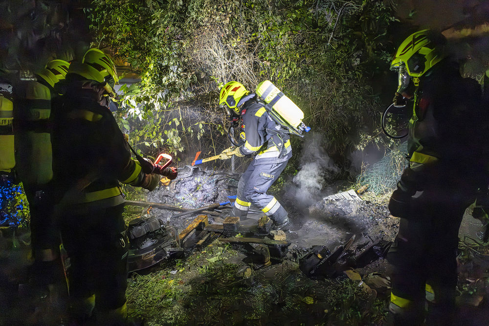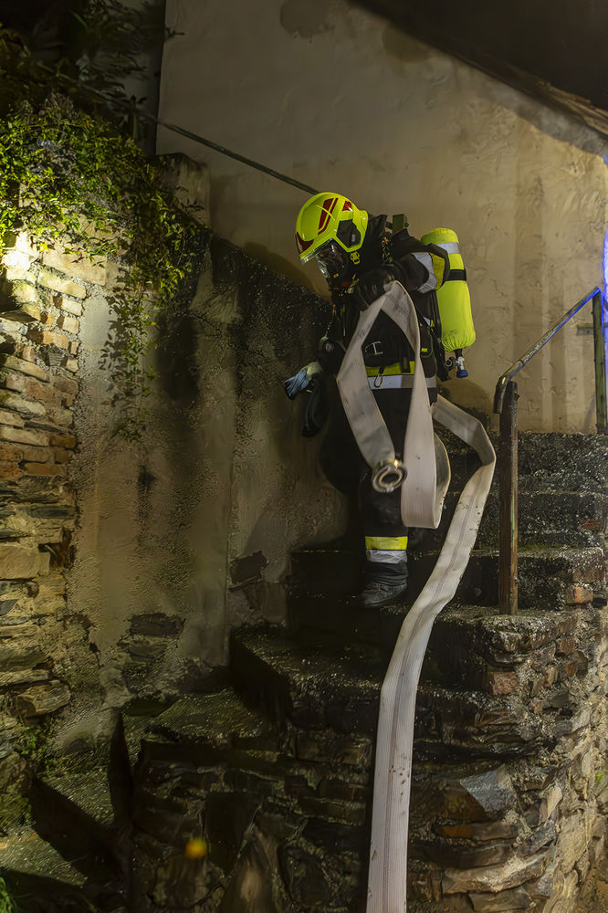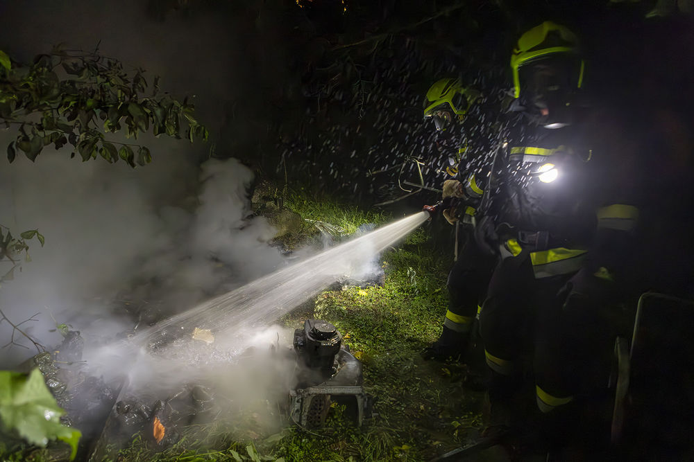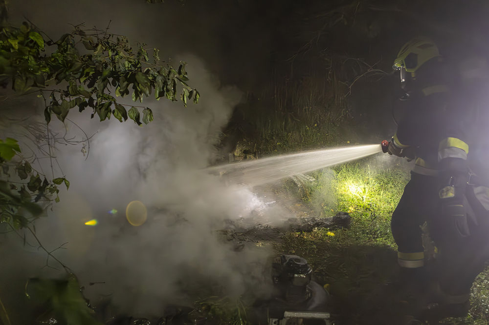 Rasch eilten mehrere Mitglieder in die jeweiligen Feuerwachen, besetzten die Fahrzeuge und rückten zum Einsatzort aus. Beim Eintreffen der Feuerwehr war der Kleinbrand bereits von der Nachbarin mit einem Gartenschlauch abgelöscht worden. Unter Atemschutz legte das ersteintreffende Fahrzeug eine Löschleitung und löschte den Brand vollständig ab. Anschließend führten die Einsatzkräfte eine Kontrolle mit Hilfe der Wärmebildkamera durch.