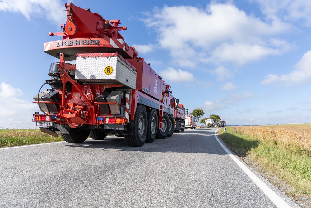 Nach einer Fahrt von rund 90 Minuten erreichten das Kranfahrzeug sowie das Begleitfahrzeug die Einsatzstelle, die bereits durch die örtliche Feuerwehr sowie die Straßenmeisterei für den Verkehr gesperrt worden war. Die Feuerwehr sicherte den LKW mittels Seilwinde und einem Teleskoplader.