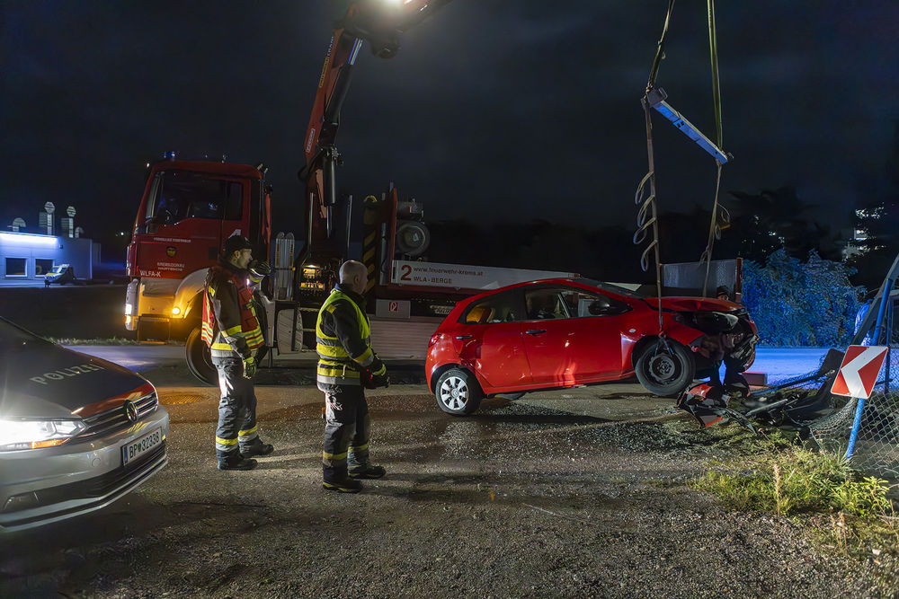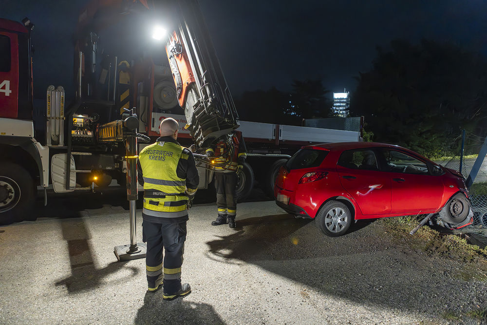 Am späten Montagabend ließ die Polizei Krems die Hauptwache zu einer Fahrzeugbergung in die Hafenstraße alarmieren. Ein Pkw war in den Grundstückszaun einer Firma gefahren.