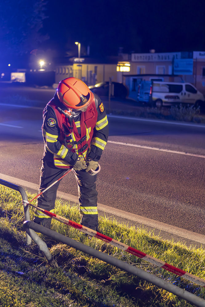 In den Morgenstunden des 8. Oktober wurden die Einsatzkräfte der Hauptwache zu einer Bergung auf die B3 alarmiert (siehe auch das Alarmierungsprotokoll). Ein PKW war verunfallt und zwischen Zaunelementen verkeilt.