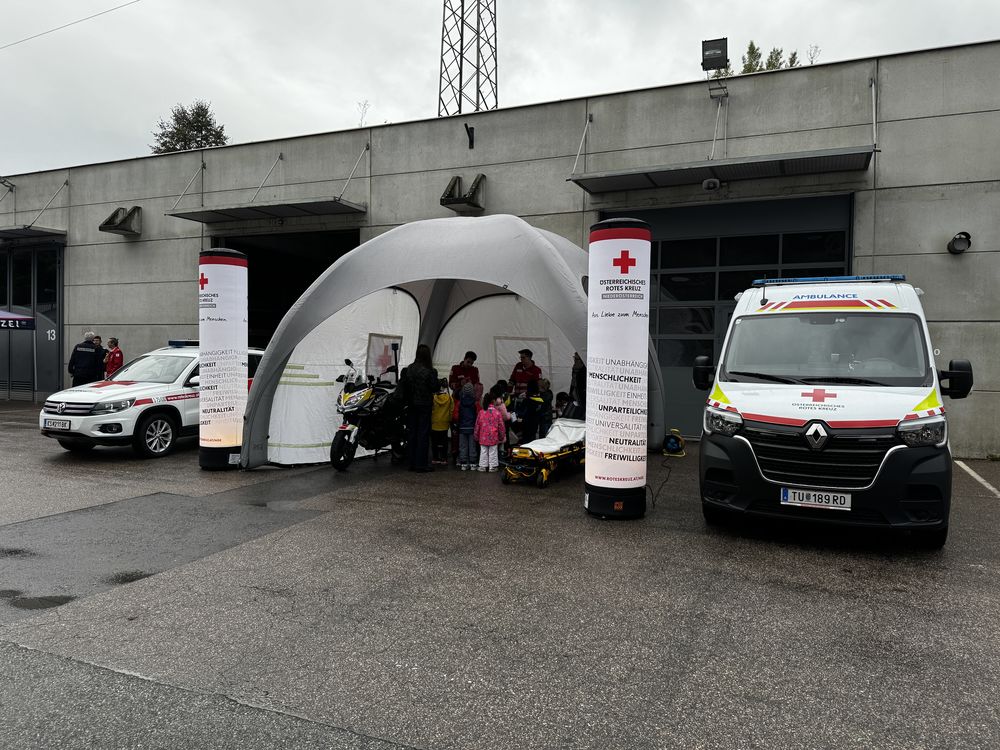 Die Polizei Krems brachte gleich zwei Einsatzfahrzeuge mit und zeigte, welche Ausrüstung Polizistinnen und Polizisten im Einsatz dabeihaben. Blaulicht, Funkgerät und Schutzweste – alles durfte ausprobiert und getestet werden. Das Rote Kreuz Krems rückte mit einem Rettungswagen und einem Einsatzmotorrad an. Mutige kleine Sanitäterinnen und Sanitäter durften einmal auf der Trage Probe liegen und in das Rettungsfahrzeug einsteigen.
