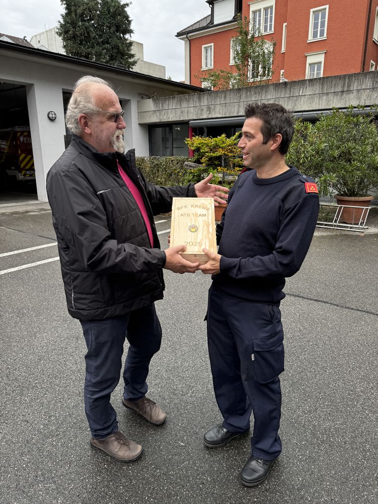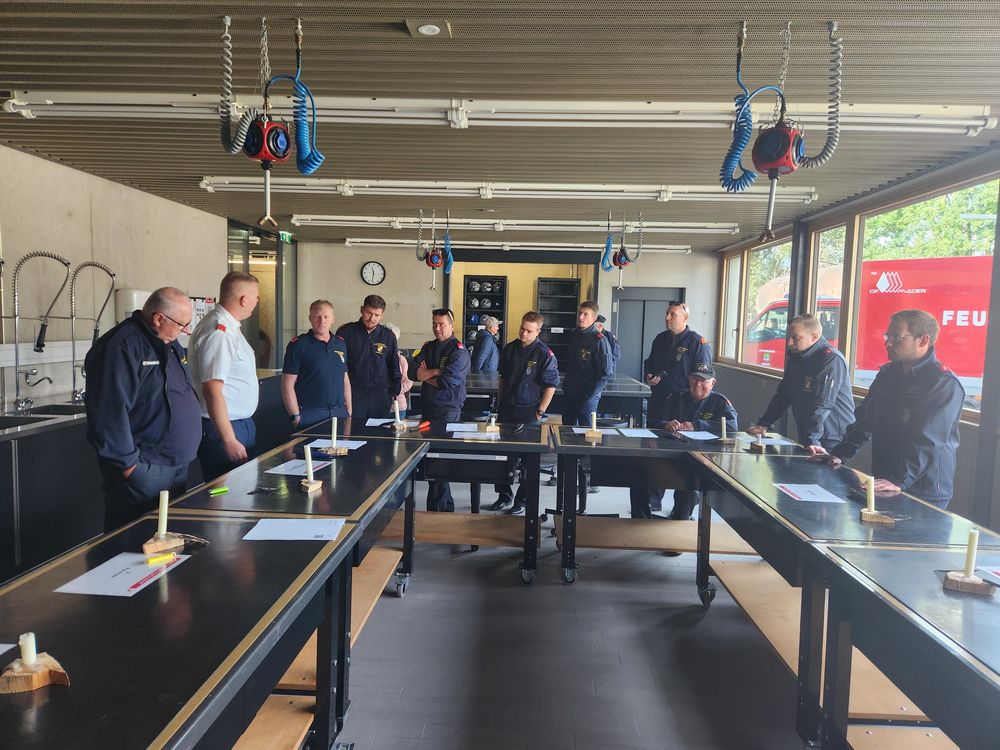 Der zweite Tag begann mit einem fachlich besonders interessanten Programmpunkt: dem Besuch der Landesfeuerwehrschule Feldkirch. Dort erhielten die Ausbilder eine ausführliche Vorstellung der Ausbildungseinrichtungen, insbesondere mit Schwerpunkt Atemschutz. Mittags genoss die Gruppe ein gemeinsames Essen auf der Schattenburg in Feldkirch, bevor der Nachmittag zur freien Verfügung stand – Gelegenheit, die Stadt und Umgebung zu erkunden. Am Abend führte ein Ausflug mit der Karrenseilbahn in Dornbirn auf den gleichnamigen Aussichtsberg, wo bei herrlichem Wetter ein beeindruckender Blick über das Rheintal und den Bodensee genossen werden konnte.