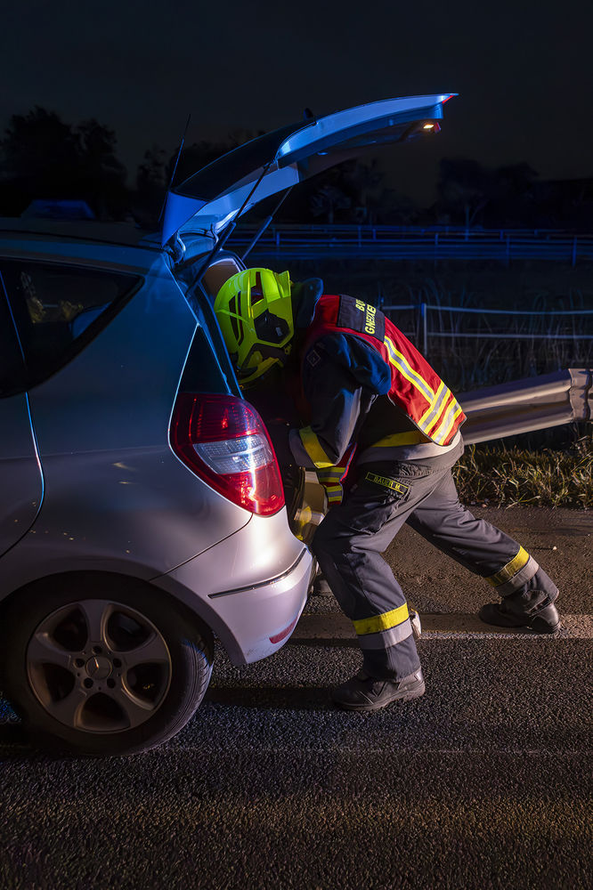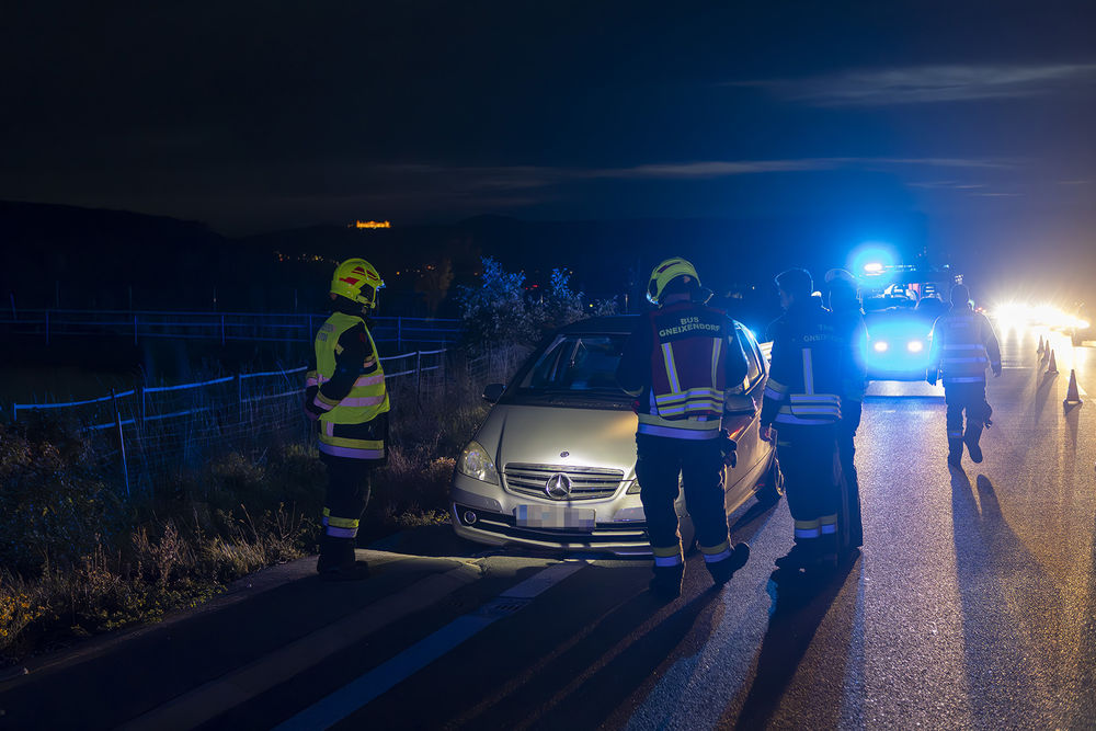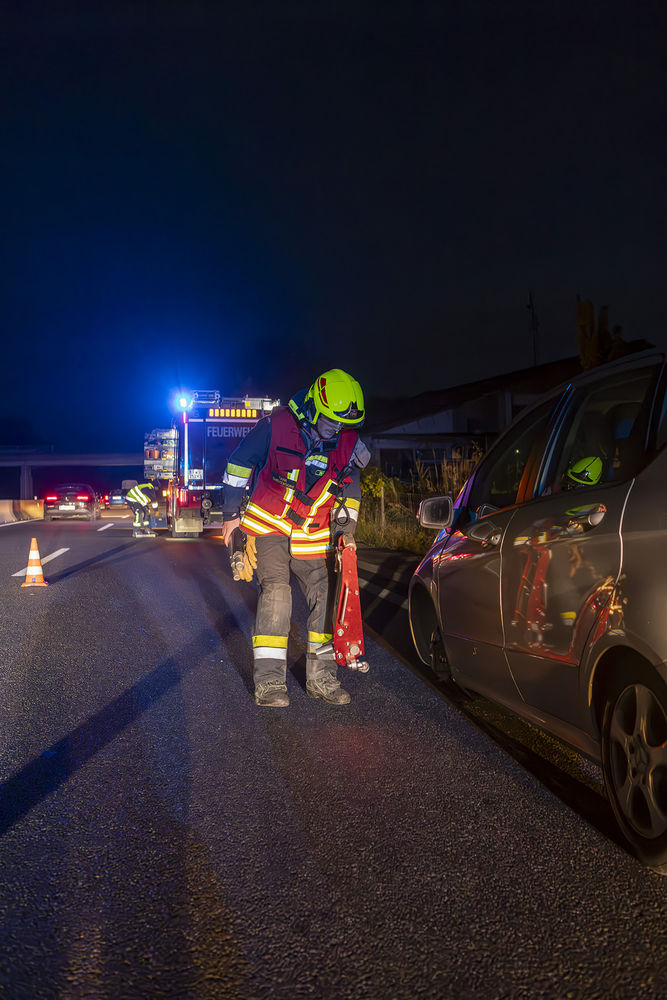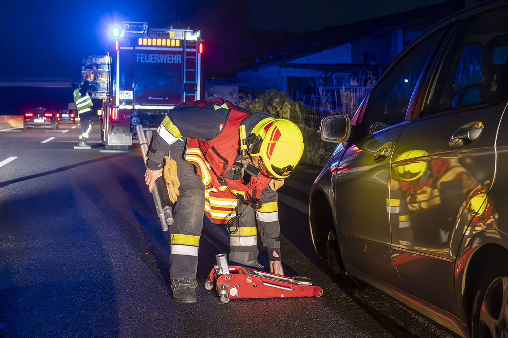 Nach dem Eintreffen der Einsatzkräfte wurde die Einsatzstelle gemeinsam mit der Autobahnpolizei großzügig abgesichert. Im Kofferraum des Fahrzeugs konnte ein Notrad aufgefunden werden, das in Absprache mit der Polizei montiert wurde. Anschließend wurde der Pkw von der Fahrbahn entfernt und bei einer nahegelegenen Park-&-Ride-Anlage sicher abgestellt.