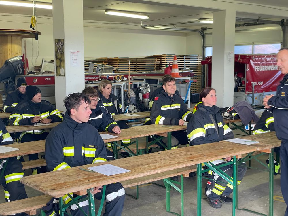 Aufgeteilt in eine theoretische sowie eine praktische Wissensüberprüfung wird hier das erlernte Feuerwehrwissen abgefragt. Souverän wusste Elias sowohl im Schulungsraum als auch bei der Praxisübung „Anleitern“ zu überzeugen.