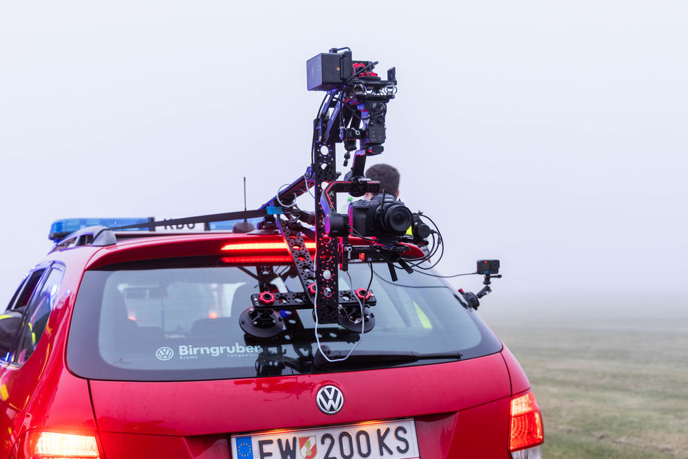 Auf die Anfrage der Feuerwehr Krems zögerte der Flugplatz Krems-Gneixendorf nicht. Unverzüglich setzte sich das Kommando der Feuerwehr Krems mit den Verantwortlichen des Flugplatzes in Verbindung und organisierte einen Termin. Der Flugplatz war für die Aufnahmen der ideale Ort, denn wo sonst würden in Krems zehn Tanklöschfahrzeuge und eine Drehleiter nebeneinander aufgestellt Platz finden, wenn nicht vor dem Tower des Flugplatzes.
