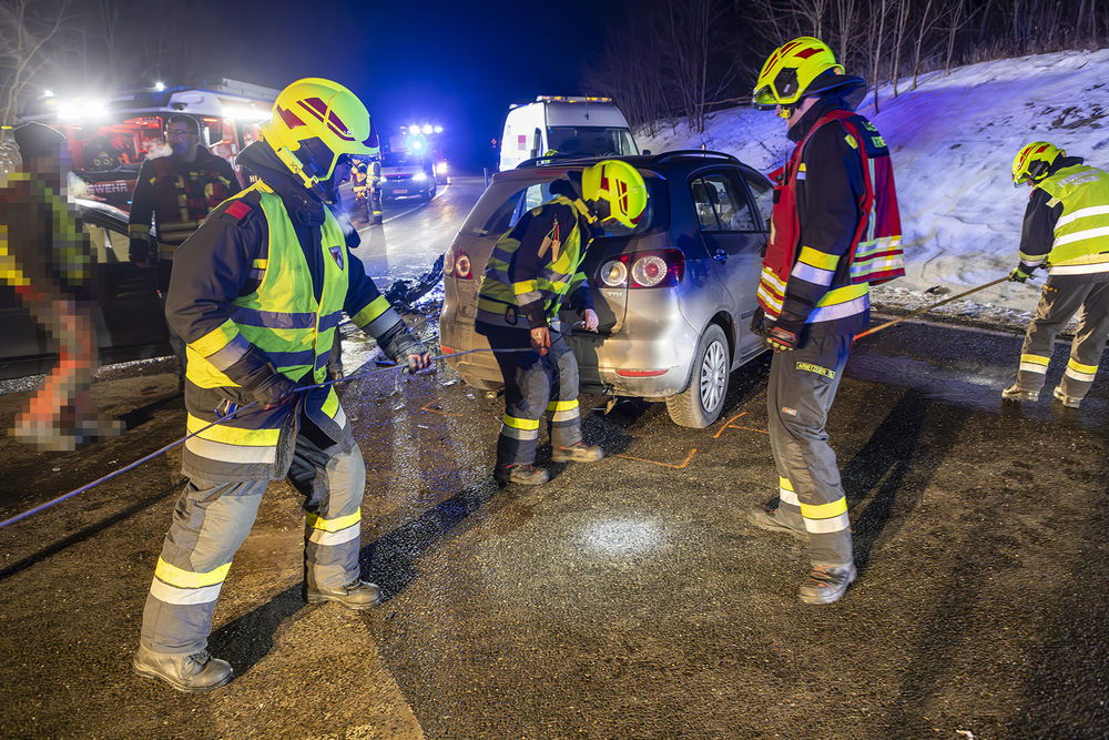 Von den Einsatzkräften wurde daher in weiterer Folge die Unfallstelle großzügig abgesichert und der Brandschutz aufgebaut. Mittels Last 4 konnte folgend ein Unfallfahrzeug verladen und gesichert abgestellt werden. Der Transport des zweiten Autos wurde von einer Privatfirma durchgeführt.