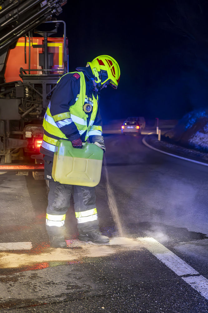 Anschließend wurde die Fahrbahn von den zahlreichen Trümmerteilen gereinigt und ausgelaufene Betriebsmittel gebunden.