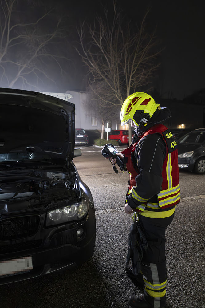 Am Samstagabend rief der Besitzer eines BMW den Feuerwehrnotruf, um eine Rauchentwicklung aus seinem Fahrzeug zu melden. Der Diensthabende alarmierte unverzüglich die Hauptwache, welche binnen weniger Minuten mit mehreren Fahrzeugen ausrückte.