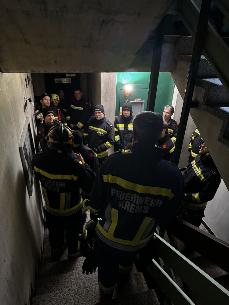 Diese Nachschau diente dem gegenseitigen Verständnis und der Professionalisierung unserer Arbeit. Der Blick zurück in das rußgeschwärzte Stiegenhaus erinnerte alle Teilnehmer daran, warum wir üben und uns fortbilden: um im entscheidenden Moment, wenn Sekunden über Leben und Tod entscheiden, als Team perfekt zu funktionieren.