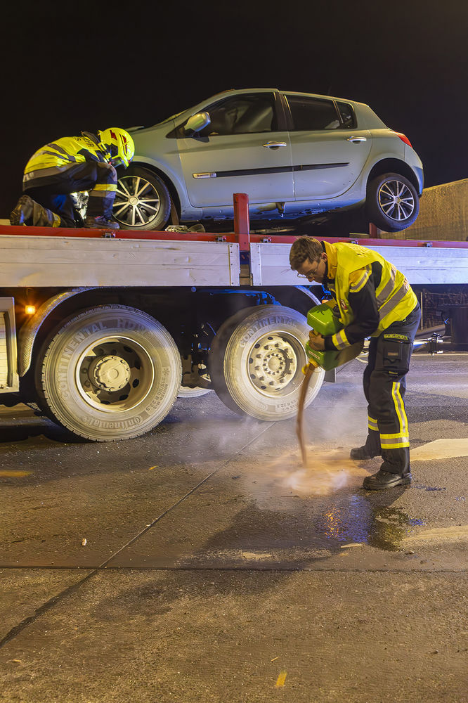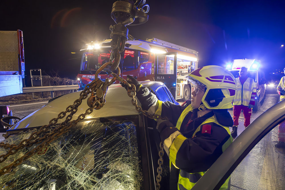 Die Aufgabe der Feuerwehr bestand darin, das Fahrzeug nach Freigabe durch die Polizei zu bergen. Aufgrund des enormen Schadens wurde das Unfallwrack mithilfe des Krans auf das Bergeplateau gehoben und anschließend zu einem gesicherten Abstellplatz gebracht.