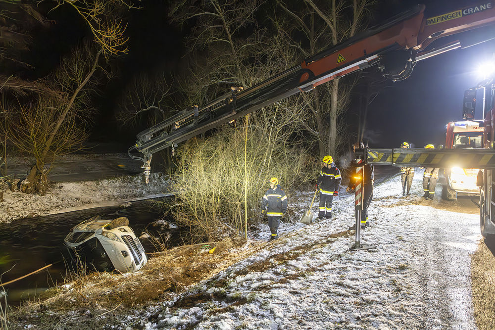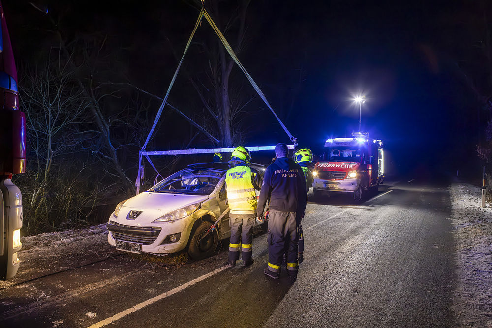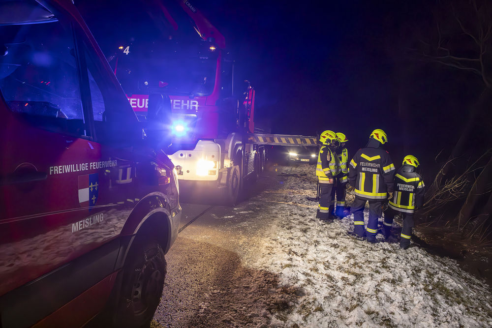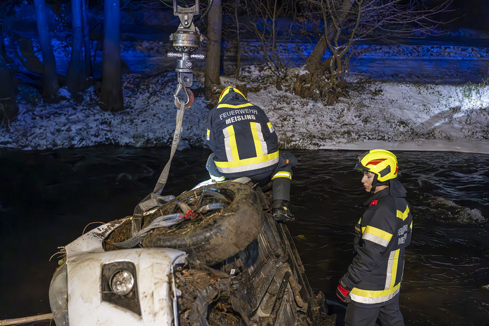 Am Montagabend kam es in der Nähe der Ortschaft Meisling zu einem Verkehrsunfall, bei dem ein Fahrzeug in die angrenzende Krems stürzte. Der Fahrer konnte sich selbst aus dem seitlich liegenden PKW retten. Zur Bergung des Fahrzeuges wurde die ortszuständige Feuerwehr Meisling alarmieren.