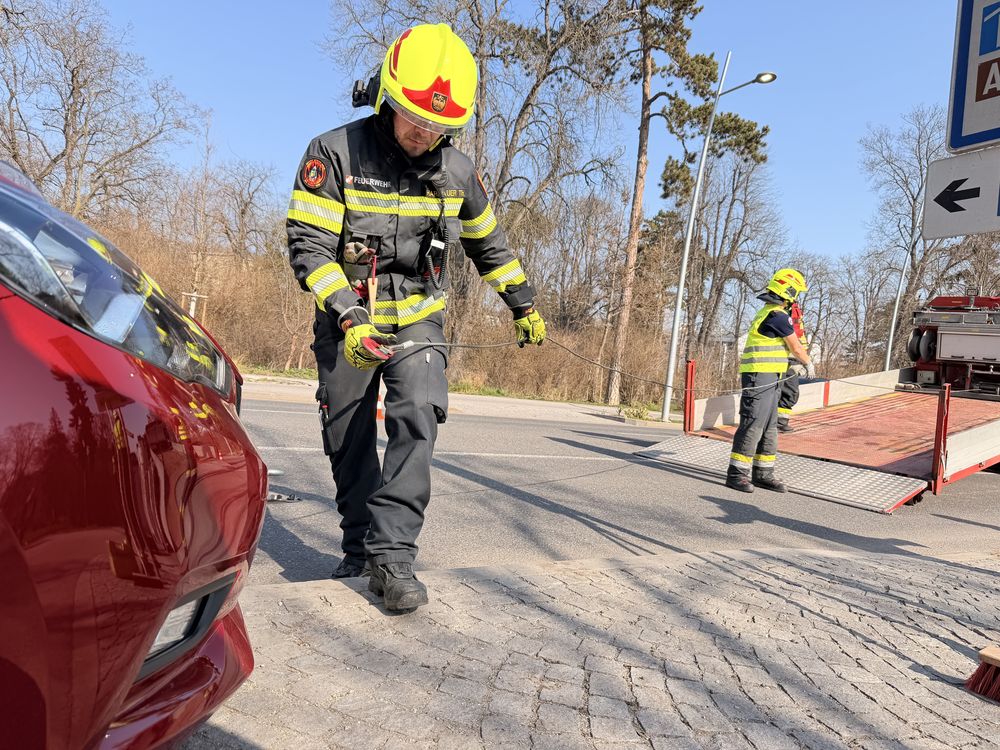 Der Diensthabende alarmierte die Feuerwachen Hauptwache und Egelsee sowie die Feuerwehr Dürnstein zu einer Menschenrettung. Rasch rückten mehrere Fahrzeuge der beiden Feuerwehren aus. Am Einsatzort eingetroffen, konnte mithilfe des Spreizers von Tank 10 Krems die deformierte Tür geöffnet werden, woraufhin die Person selbstständig aussteigen konnte. Zur weiteren Kontrolle wurde sie vom Roten Kreuz Krems versorgt und anschließend in das Universitätsklinikum Krems gebracht.