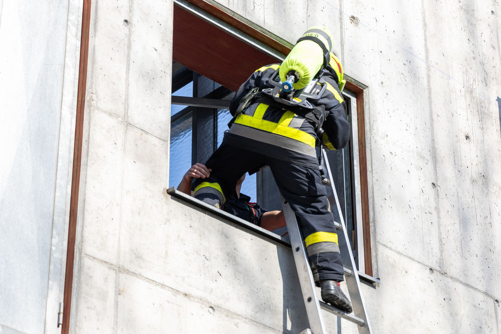 Der zweite Teil des ersten Tages beschäftigt sich mit den Fortbewegungsarten. Die Auszubildenden lernen dabei, wie sie sich im Atemschutzeinsatz möglichst sicher fortbewegen. Ein weiterer Schwerpunkt liegt auf der Kommunikation innerhalb des Trupps, insbesondere bei besonderen Gegebenheiten entlang des Einsatzweges. Den Abschluss des Tages bildet das Retten von Personen. Hier zeigen die Ausbilder verschiedene Techniken, die je nach Einsatzsituation angewendet werden können.