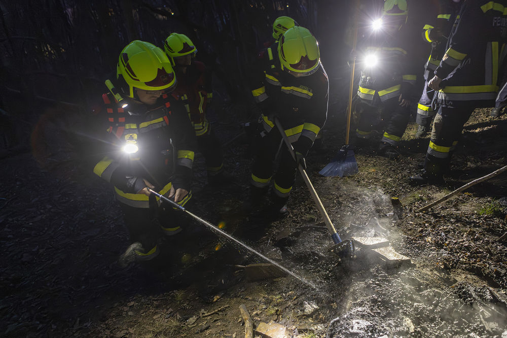 Da beim Eintreffen der Feuerwehr nur noch eine leichte Rauchentwicklung wahrgenommen wurde, begannen die Einsatzkräfte mit der genauen Suche nach dem Brandherd. Da das betroffene Waldstück großflächig war und bereits die Dämmerung einsetzte, ließ der Einsatzleiter die Drohnengruppe der Feuerwehr Krems nachalarmieren.