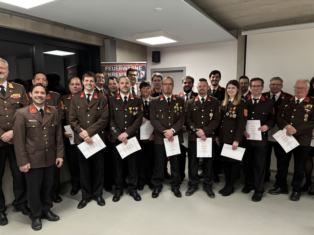 Sonntag, 18. Jänner 2026 Auszeichnungen und Beförderungen bei der Mitgliederversammlung 2026 Im Zuge der Mitgliederversammlung 2026 wurden folgende Ernennungen, Auszeichnungen und Beförderungen ausgesprochen. Gemeinsam mit dem Bezirksfeuerwehrkommandant-Stellvertreter BR Engelbert Mistelbauer, dem Bürgermeister der Stadt Krems sowie dem Kommando der Feuerwehr Krems wurden im Laufe der Versammlung folgende Ernennungen und Beförderungen ausgesprochen sowie Auszeichnungen übergeben. |